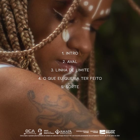 O EP, traz cinco faixas autorais, Intro, a faixa de abertura traz uma leveza de medida, o único instrumento presente é a sua voz, trazendo o que há de melhor nesse trabalho: o sentimento. A segunda faixa, intitulada Aval, mostra a força que há na sua vivência artística, relatando os processos de desprendimento da branquitude e o eu-lírico da canção demonstra as dores enfrentadas diante dos “não” já ditos pelo racismo e a vitória em superá-los no encontro com a ancestralidade.