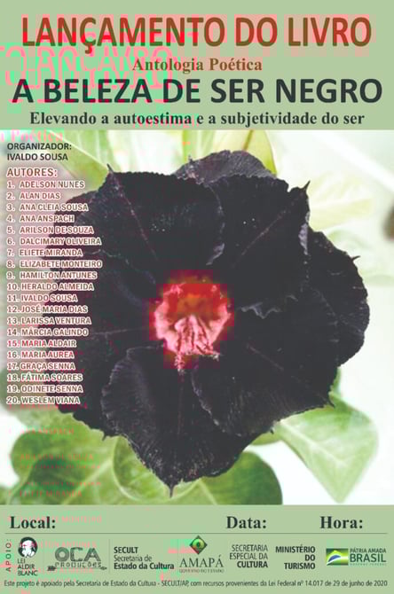 Nesta segunda-feira (28), às 19h, na Escola Estadual José Bonifácio, no Distrito do Curiaú, será lançado o Antologia Poética: “A beleza de ser negro, elevando a autoestima e a subjetividade do ser”. A obra, que tem como organizador o escritor Ivaldo Souza, conta com 20 autores. A proposta do livro é, ´por meio da poesia, elevar a autoestima da população afrodescendente.